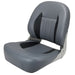 Plush high-desity foam padding with lateral support. UV stabilised upholstery. Reinforced ribbed base. Robust plastic hinges. Positive lock folded position. Standard and slide mountable. Includes mounting hardware. W465 x D510 x H543mm.