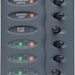 PTC fused. Positive temperature coefficient (PTC) fuses are solid state 9 amp resettable fuses (turn switch off for 10 secs to reset) Stylish contoured, moulded plastic panel with removable cover plate over the switches to conceal screws and water drain. Six gang switched circuits with high quality, two position toggle switches covered by neoprene rubber boots providing splash proof protection from the front face to IP56 standard. Features red LED's for systems on and green LED back-lit labels.