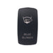 Laser etched water resistant Bilge Blower Rocker switch. Water resistant switch with Laser Etched Actuators specially designed for marine or outdoor applications. IP 65 rated. Equipped more durable and power efficient LED lamps and with dual voltage rating 12V/24V. PC terminals 0.250" Quick connect terminals.