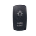 Laser etched water resistant cabin light Rocker switch. Water resistant switch with Laser Etched Actuators specially designed for marine or outdoor applications. IP 65 rated. Equipped more durable and power efficient LED lamps and with dual voltage rating 12V/24V. PC terminals 0.250" Quick connect terminals.