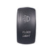 Laser etched water resistant Flood Light Rocker switch. Water resistant switch with Laser Etched Actuators specially designed for marine or outdoor applications. IP 65 rated. Equipped more durable and power efficient LED lamps and with dual voltage rating 12V/24V. PC terminals 0.250" Quick connect terminals.