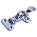 Chrome plated brass anti-rattle fastener. Lever action, with eye for padlock. Bolt down area size 70mm x 45mm.