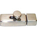 Stainless castings. Overall length 100mm, height 30mm, depth (excl. knob) 20mm.