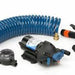 The Par-max 4.0 automatic washdown kit includes a 3 chamber diaphragm pressure pump which supplies a constant saltwater flow with quiet operation. High pressure 60 psi jet is ideal for removing mud from anchoring hardware and blasting decks and fishing platforms clean with ease. 60 psi high pressure cut out. Thermal overload protection. Ignition protected. Self priming to 3 metres (10 ft) Up to 15 litre (4.0 GPM) per minute flow rate. Diaphram design can run dry for extended periods. Splash resistant coating and sealed pressure switch extend pump life. Includes pump, 12mm inlet filter, hose trigger nozzle, standard Aust. garden hose connector, USA connector for HoseCoils, 1 x 12mm straight hose barb port, 1 x 12mm 90 degree hose barb port, 1 x snap-in port for direct connection to HoseCoil USA threaded hose.