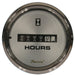 Kronos 2" Hour Meter 10,000hrs 12-32 VDC with stainless steel trim. Hour meter operates by applying battery voltage across the gauges register motor to ground. The register increments increase when the key switch in on. Route power through a normally open Oil Pressure switch to count "engine running" hours.