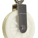 Single steering pulley swivel top 65mm diameter pulley, 13mm inside diameter ring swivel top. Maximum working load 300kg.