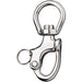 316G Stainless Steel Snap Shackle, Series 200 Swivel Bale. Heavy duty plunger springs and precision components ensure dependable service. Body and hasp profiles are designed for easy clearance of lines and fittings when released. High strength to weight ratio. Split ring on plunger pin is spot welded for security. A lanyard can be attached to the plunger pin for easy opening.